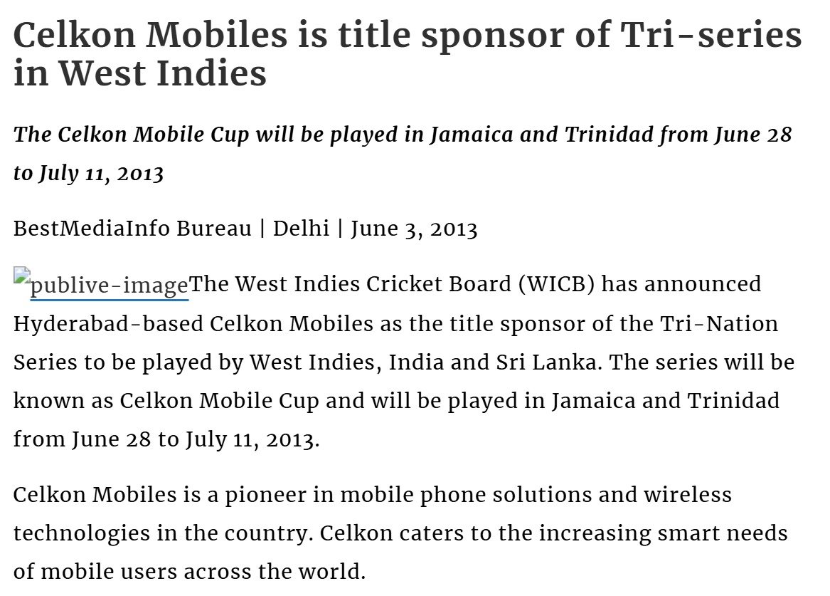 Celkon Mobiles is title sponsor of Tri-seriesin West Indies